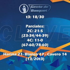 El tercer cuarto fue el de mayor paridad y con varios cambios de liderazgo. Ambos con ajustes defensivos, la clave fue la cuarta falta de Muzi a falta de 3m para el cierre del cuarto que lo hizo ir a la banca y el arranque goleador de Harina (58-58).