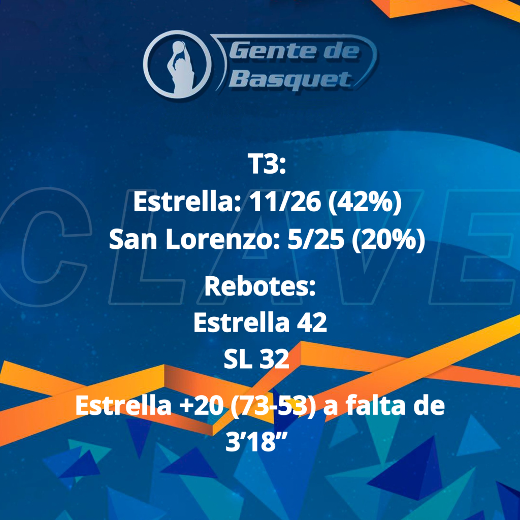 San Lorenzo seguiría recortando distancias con Fuentes como faro. El equipo local generaba anotaciones con Quiroga y el pibe Herrera, además estiraría la diferencia a 20 (71-51), restando 4’50”. Ambos equipos usaron todos los jugadores que tenían a disposición. Triunfó Estrella 81-61.