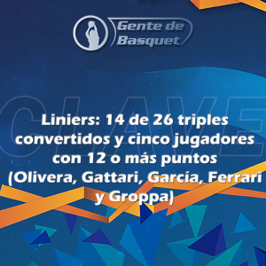 Liniers 88: Santiago Gattari 16; Octavio Cancellarich 3; Alejo Agulló 6; Franco Ferrari 15; Bautista Olivera 18 (F.I.) Alan García 15; Genaro Groppa 12; Julián Marinsalta 3; Tomás Del Sol. DT: Mauricio Vago.