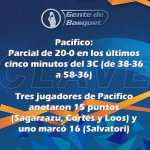 Pacífico 73: Francisco Mattioli 5; Branco Salvatori 16; Valentín Cortés 15; Santiago Loos 15; Tomás Sagarzazu 15 (F.I.) Mateo Boccatonda 2; Genaro Pisani 2; Juan Cruz Redivo; Iñaki Errazu 3; Gino Pisani. DT: Mauro Richotti.