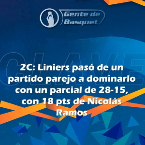 El parcial arrancaría con ventaja de la visita, con un cerrado 21-23. En el segundo cuarto, Estrella estaría arrancando con Fausto Herrera con 5 pts,y algunos puntos con 2 pts de cada uno, de Máximo Astradas, Agustín Kucan, Tomás Díaz y Bautista Pérez. Pero Liniers estaba encendido, con un imparable e intratable Nicolás Ramos, que anotaba 18 pts, además de la ayuda de Genaro Groppa con 4 pts, 3 de Tomás Sabatini y 3 de Franco Lanaro. El parcial terminaría con gran ventaja local, (28-15) terminando un 49-38 sobre el final del primer tiempo.