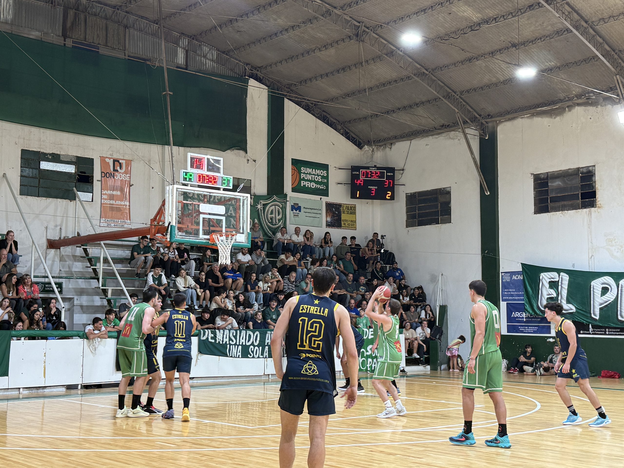 En el tercer período, parecía que el partido se encaminaba definitivamente para el local. Sin embargo, Estrella reaccionó y en cinco minutos achicó la brecha a 50-47. El desarrollo se volvió más cerrado, pero cuando el momento quemaba, apareció Santiago Loos con dos triples consecutivos para sostener a Pacífico. Aun así, la visita ganó el parcial (21-20), dejando el marcador 65-54 de cara al último cuarto.
