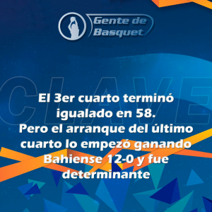 Bahiense del Norte (84): S. Luengo (12), G. Muzi (10), T. Bonivardo (14), E. Roberson (4), J.P. Hollender (19), fi; J.C. Hoya (8), B. Lozano (6), T. Amatte (11) y B. Castañares. DT: Alejandro Navallo.
