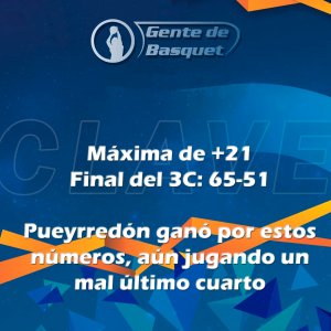 En el tercer segmento se mantuvo la tónica y el juego parecía liquidado. Pueyrredón tocó la máxima de 21 (61-40), con Renzi como figura y una alta efectividad desde el perímetro. Independiente no encontraba los caminos en ataque y en defensa no ofrecía resistencia a los embates del Purre.